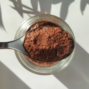 Une tapenade qui a du caractère, aux olives kalamata (olives violettes) de Grèce.