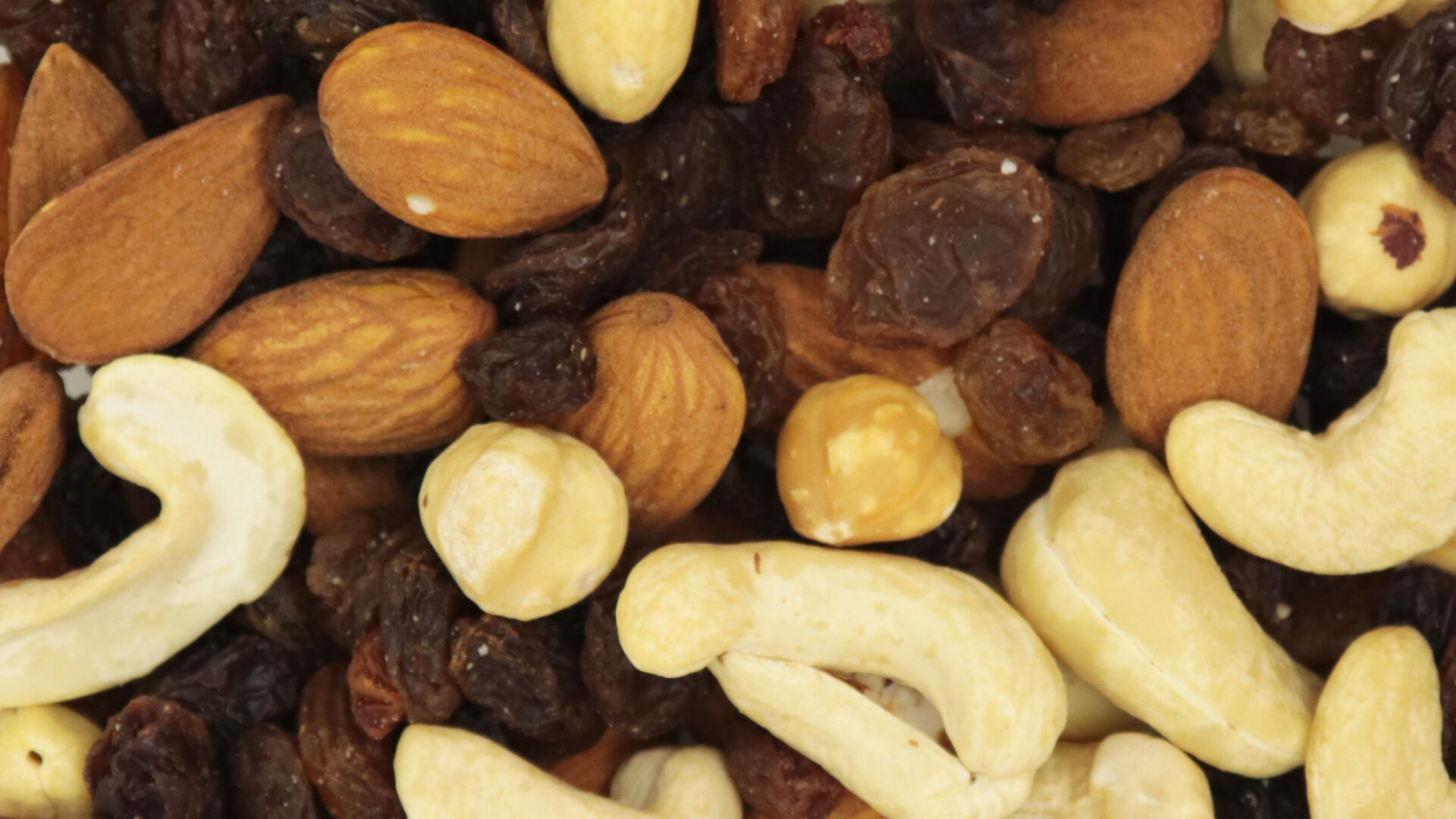Ingrédients : raisins sultanine équitables (raisin, huile de tournesol), noix de cajou équitables, amandes décortiquées équitables, noisettes grillées équitables.