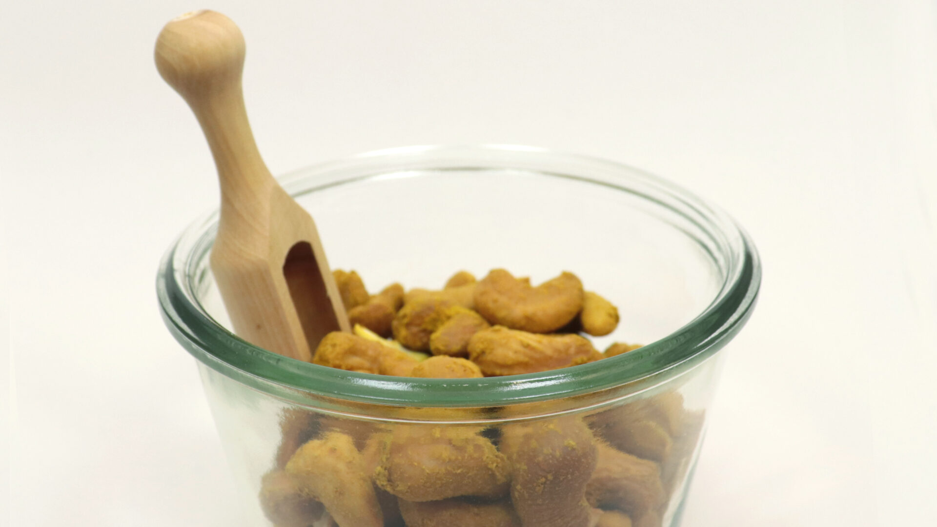 Des noix de cajou au curry, avec une belle richesse arômatique et des notes de cannelle, de coriandre, de curcuma et de poivre, particulièrement mises en valeur par l’arôme beurré de nos noix de cajou issues de notre filière bio et équitable au Vietnam.