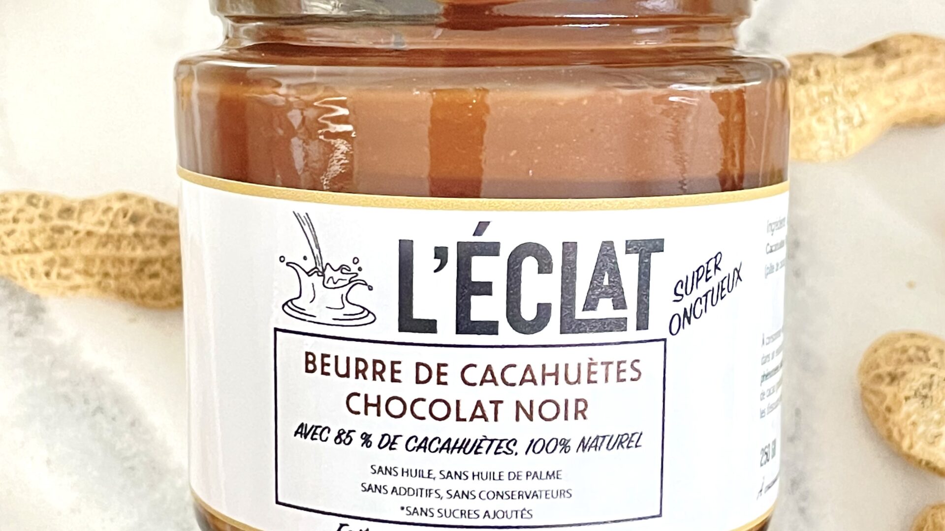 C’est un beurre de cacahuètes super onctueux, composé de 85 % de cacahuètes et 15 % de chocolat noir à 70 % en teneur cacao !