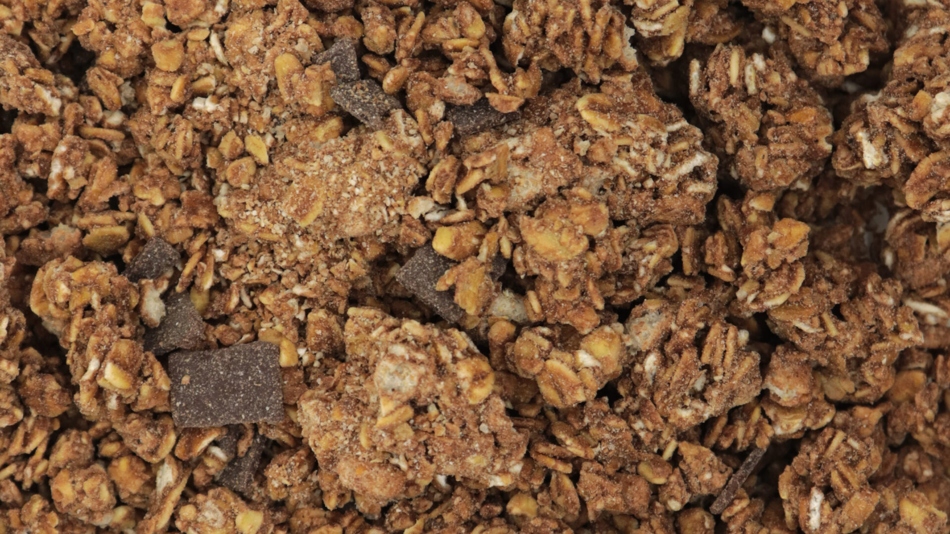 Ingrédients : Céréales complètes (flocons d’avoine*, flocons de blé*), sucre*, huile de tournesol*, poudre de chocolat* (sucre*, poudre de cacao*), morceaux de chocolat* (sucre*, pâte de cacao*, beurre de cacao*, émulsifiant : lécithine de tournesol*), riz soufflé* (farine de riz*, farine de blé*, sucre*, malt d’orge*, émulsifiant : lécithine de tournesol*), farine de blé*, sirop de glucose*, chocolat au lait* (sucre*, poudre de lait entier*, beurre de cacao*, pâte de cacao*, arome*), miel*, sucre* caramélisé, antioxydant : extrait riche en tocophérols