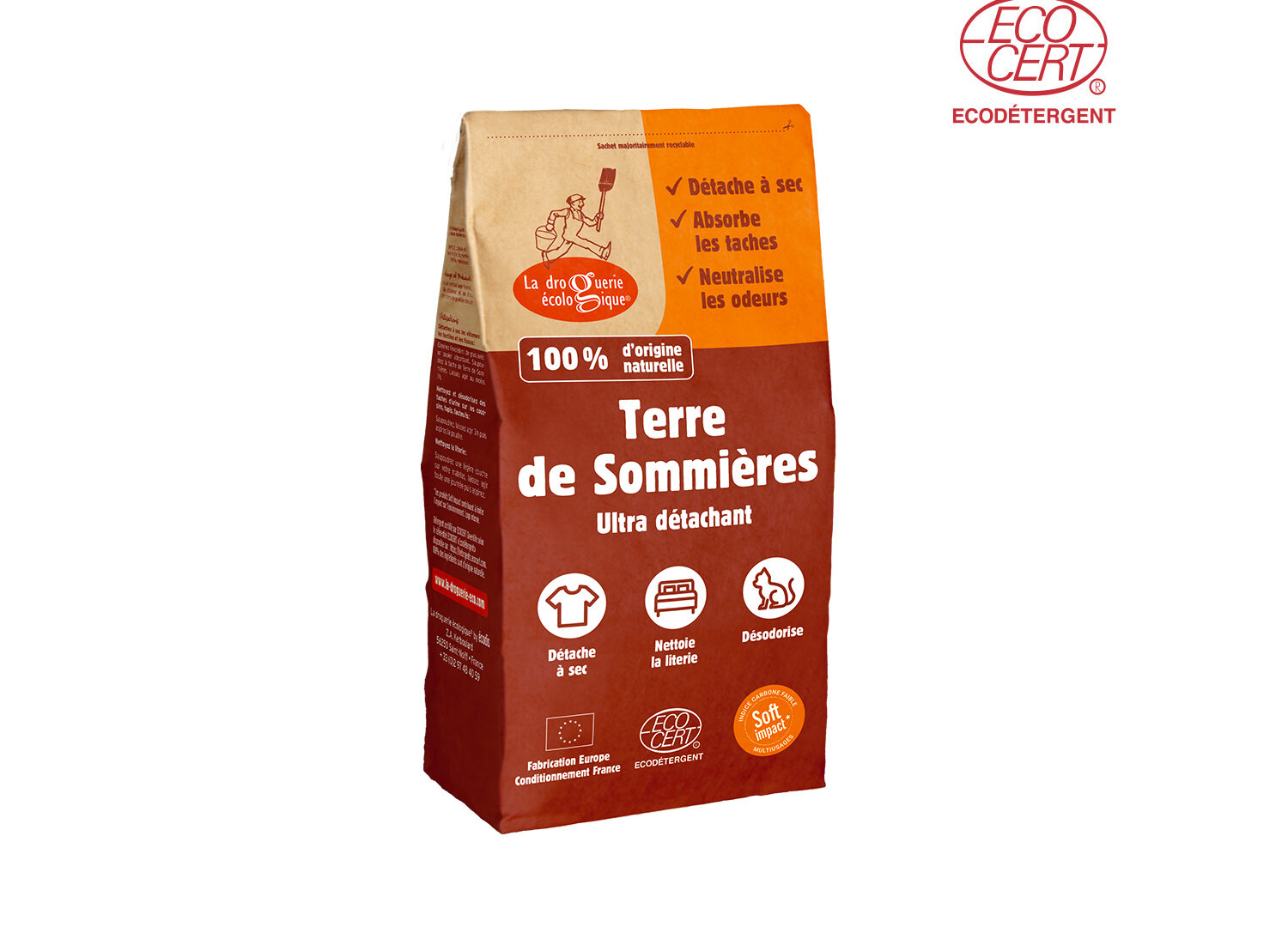 La Terre de Sommières, argile naturelle, absorbe et élimine en douceur les taches grasses, même sur les textiles fragiles,