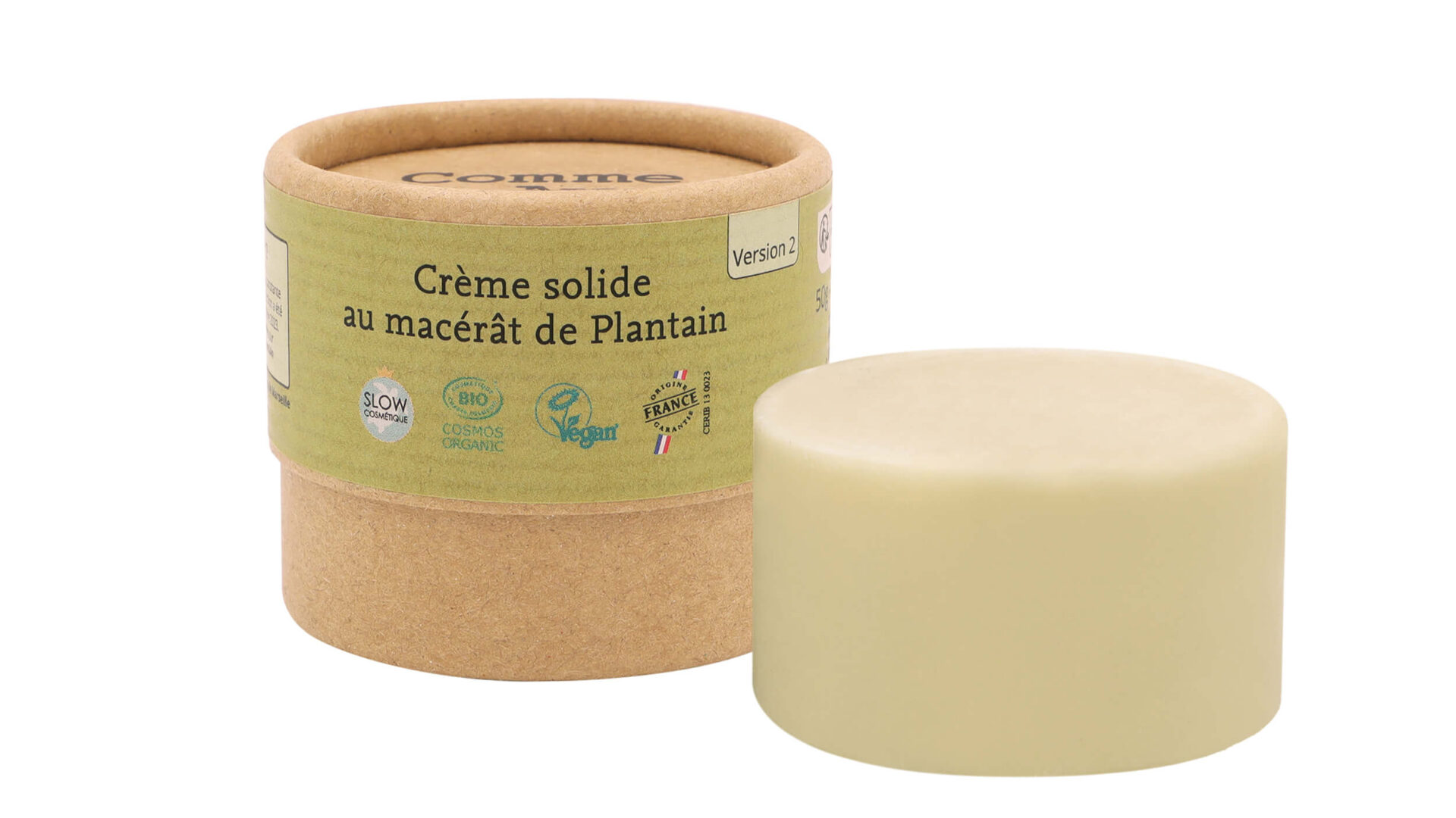 La crème naturelle et solide à la poudre jujubier et au macérât de plantain apporte des vertus apaisantes pour la peau.