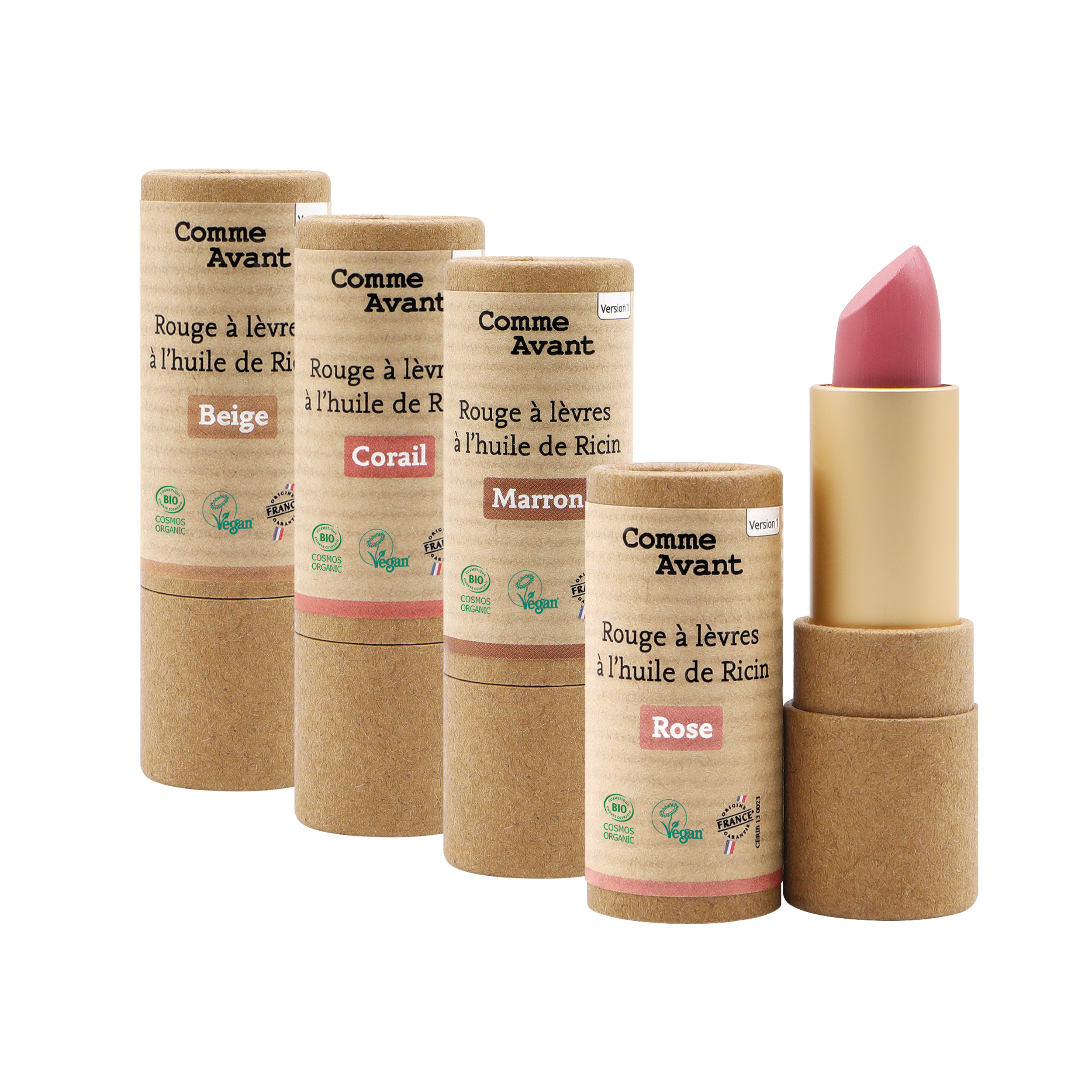 Les rouges à lèvres à l’huile de ricin Comme Avant sont fabriqués dans leur atelier situé près de Marseille, avec une composition courte. Ils offrent une tenue moyenne de 5h et ne dessèchent pas les lèvres au cours de la journée.